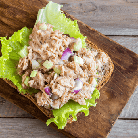 6. Tuňákový salát podávejte na listech salátu, s krekry nebo jako sendvič mezi plátky chleba.